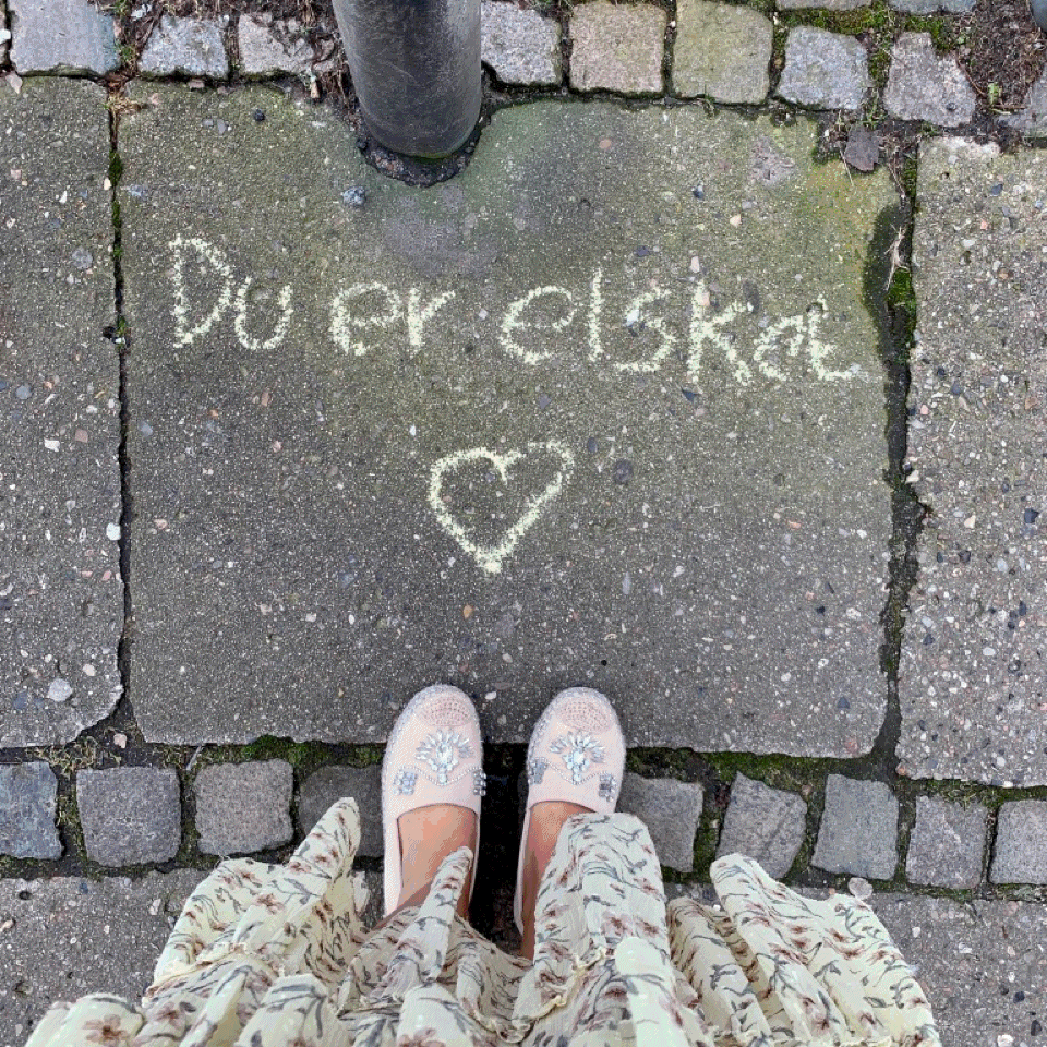 I starten af 2020 tog jeg farvekridt i hånden og skrev en masse gode ord og budskaber i Horsens for at sprede glæde og kærlighed.